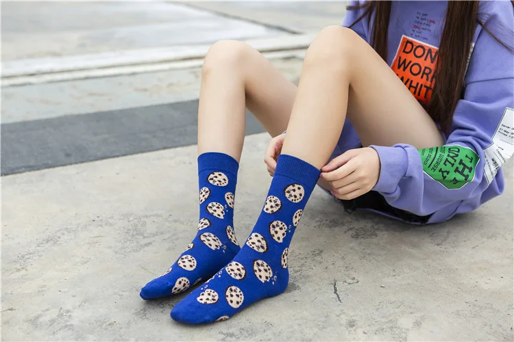 Женские носки цветные Симпатичные носки из чесаного хлопка Фрукты Банан авокадо лимон яйцо печенье пончики еда счастливого цвета носки Харадзюку