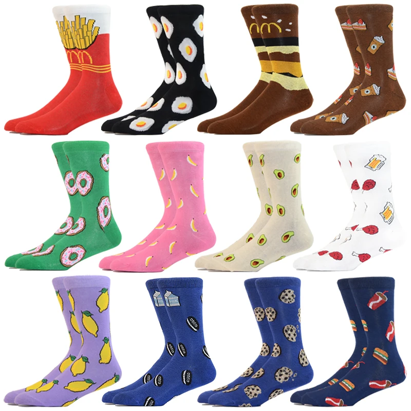 Цветные цветные женские хлопковые носки, картофель фри, кока, фрукт...