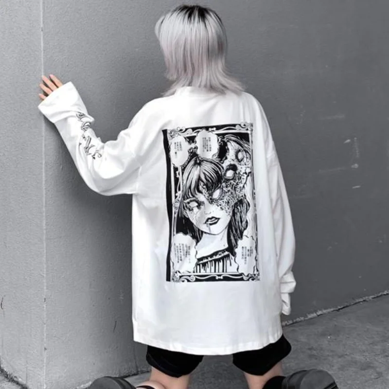 Футболка женская с длинным рукавом, в готическом стиле, в стиле аниме Харадзюку, на осень, 2021
