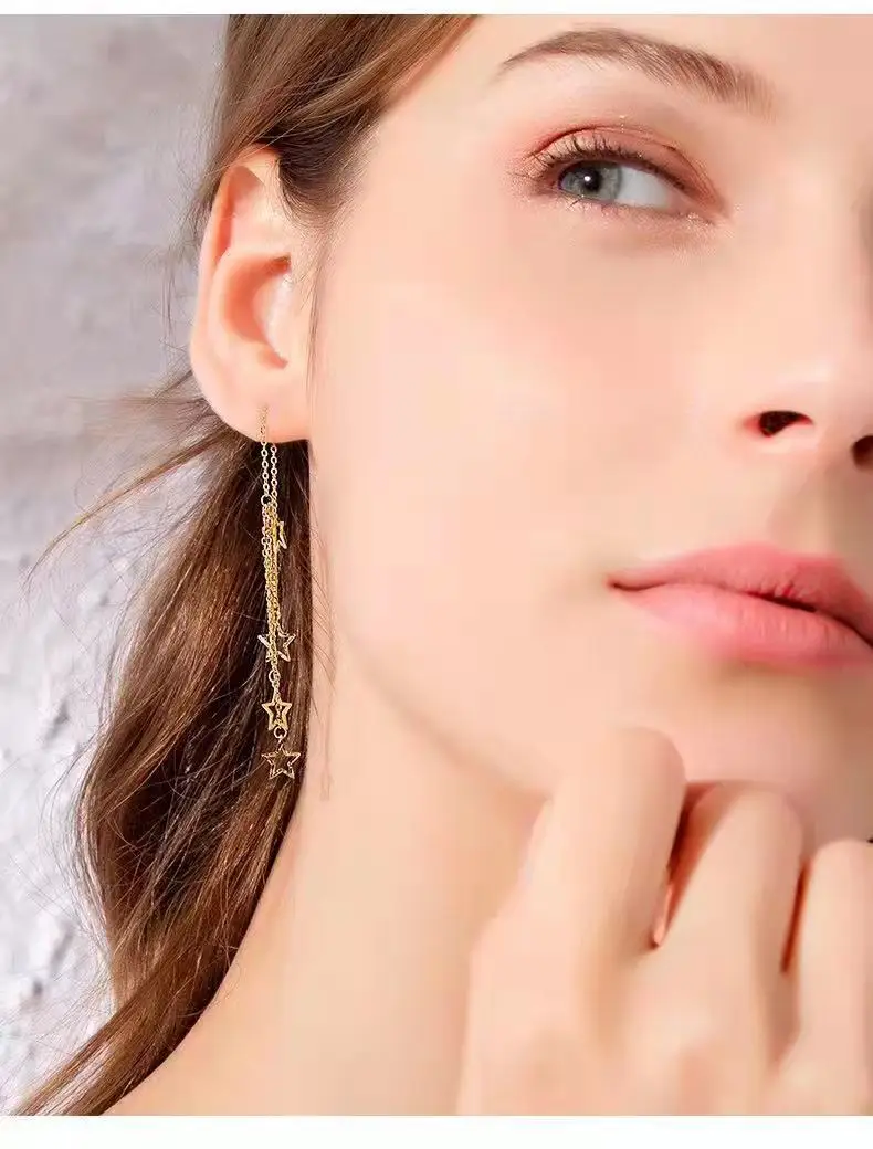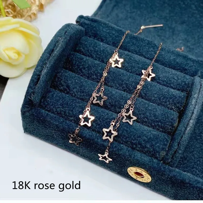 Серьги-подвески из настоящего 18-каратного золота, простые дизайнерские серьги с пятиконечной звездой, чистые серьги с кисточками AU750 для женщин, Изящные Ювелирные изделия, подарок на свадьбу