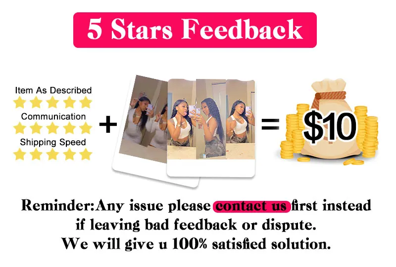 Мы будем очень признательны, если вы оставите нам 5 звезд положительных отзывов с 4-5 картинками. Ваш хороший отзыв-Отличная поддержка для наших трудолюбивых сотрудников. Из благодарности мы отправим вам 5 долларов. Если вы не удовлетворены полученным товаром, пожалуйста, свяжитесь с нами, прежде чем оставлять негативные отзывы. Мы хотели бы работать вместе с вами, чтобы решить любую проблему.