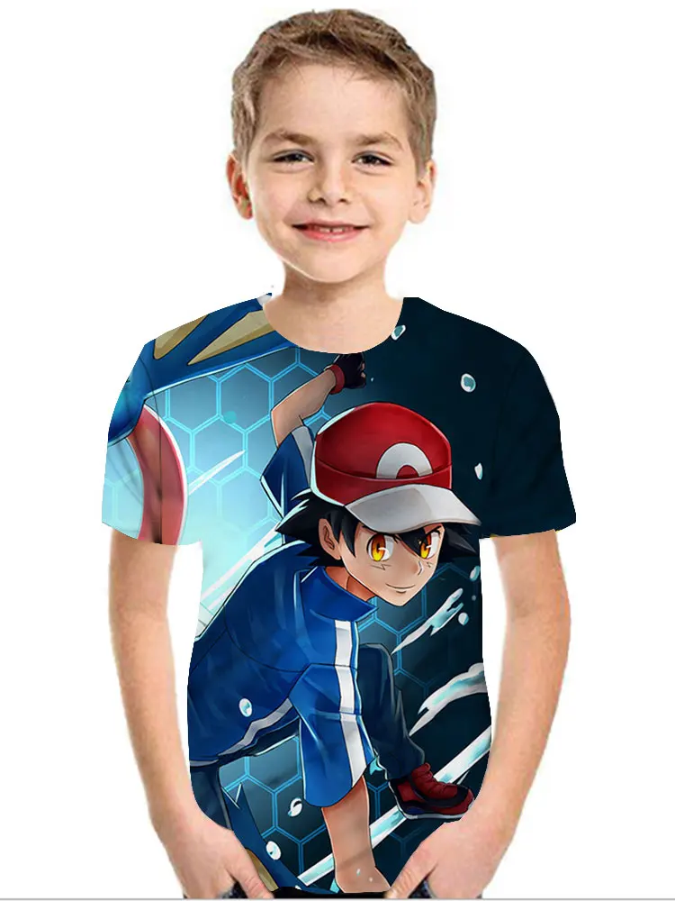 Футболка с персонажами мультфильма Покемон, 3D Одежда для мальчиков и девочек, футболка большого размера, Одежда для новорожденных, детская одежда