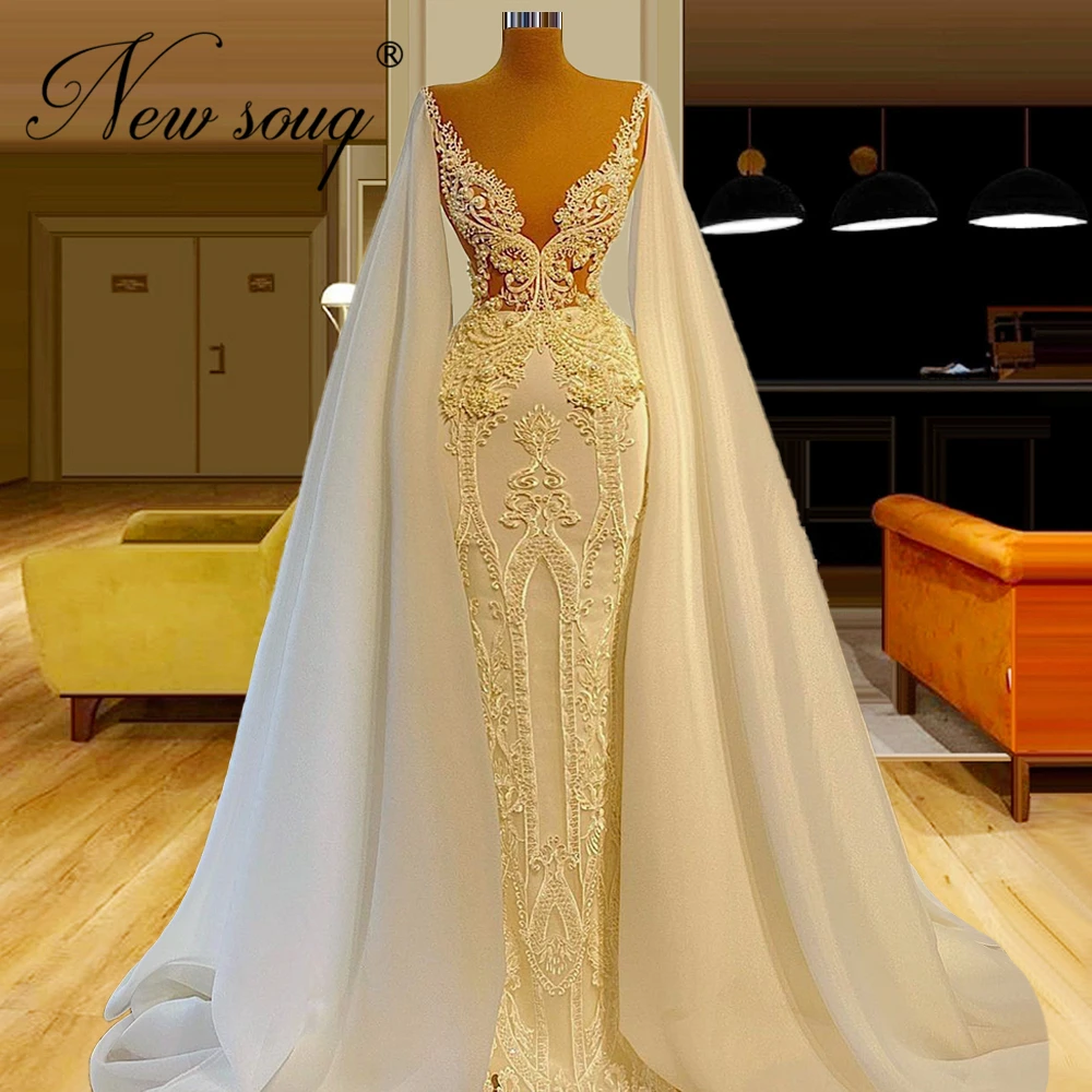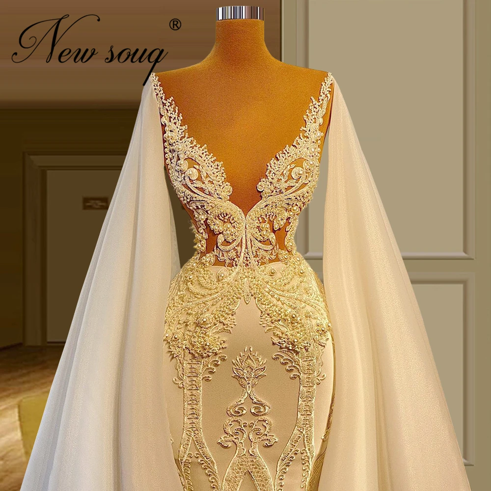 Вечерние платья Ближнего Востока цвета слоновой кости с бисером, свадебное платье, Новое поступление, индивидуальные арабские дубайские платья-русалки для выпускного вечера знаменитостей