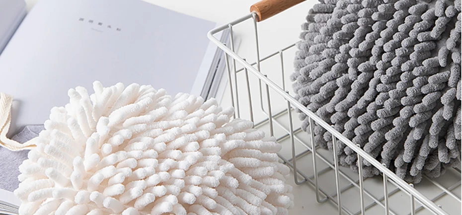 Полотенце для рук из синели с шариком, мягкое Впитывающее быстросохнущее полотенце, полотенце с петлей, подвесное кухонное полотенце для рук