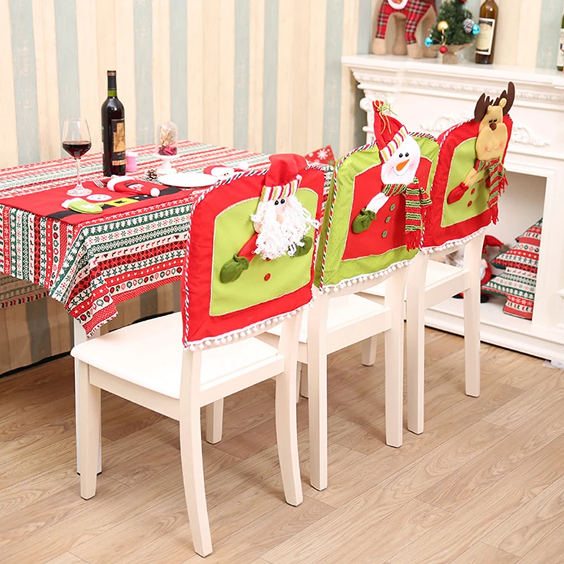 1 шт., Рождественский чехол на стул, нетканый чехол на обеденный стул, домашний чехол на Рождество, Новый Год, чехлы для спинки стула, декоративный чехол на сиденье