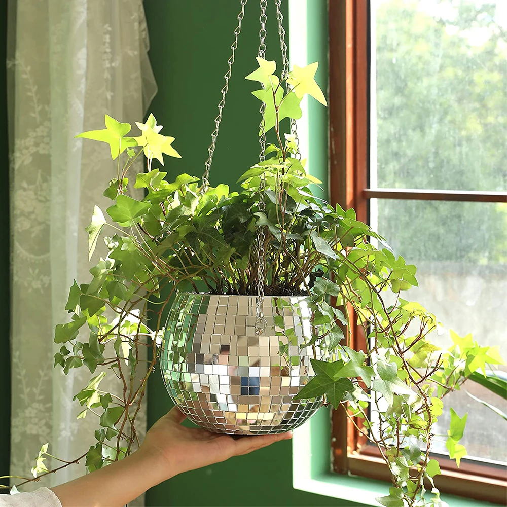 Зеркальный шар в форме цветочного горшка подвесная ваза цветочные горшки веревка подвесная настенная домашняя декоративная ваза контейнер украшение комнаты