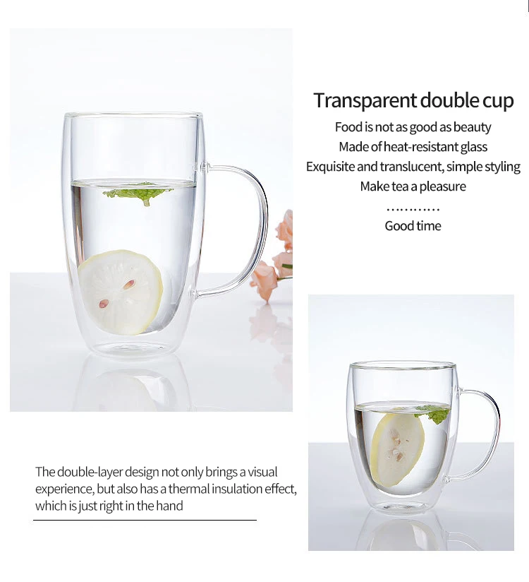 2 шт термостойкие Двойные стенки Стеклянная прозрачная чайная чашка...