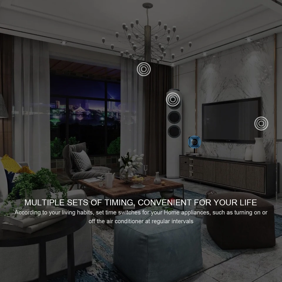 В соответствии с вашими привычками жизни, установите переключатели времени для вашей бытовой техники, такие как включение или выключение кондиционера через регулярные промежутки времени