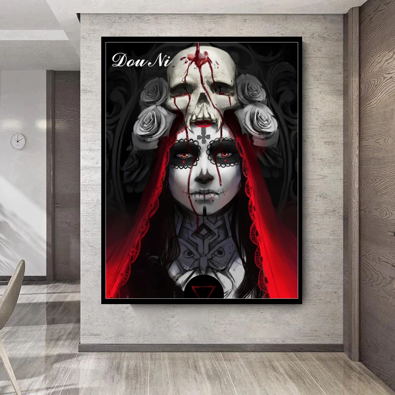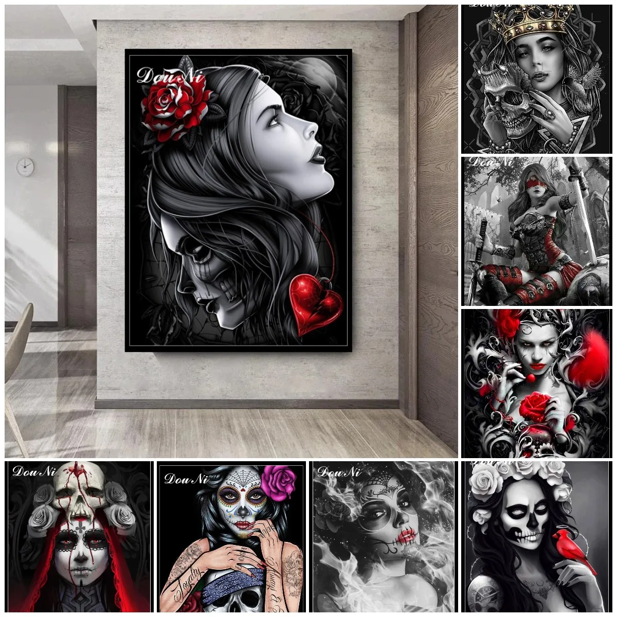 Алмазная живопись с изображением сахарного черепа, Женская Роза, Набор для вышивки крестиком, Хэллоуин, Череп, цветок, искусственная работа