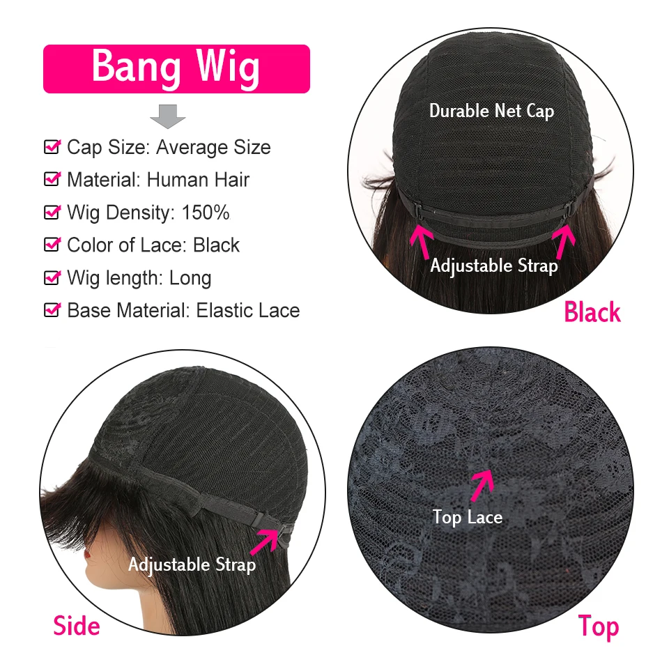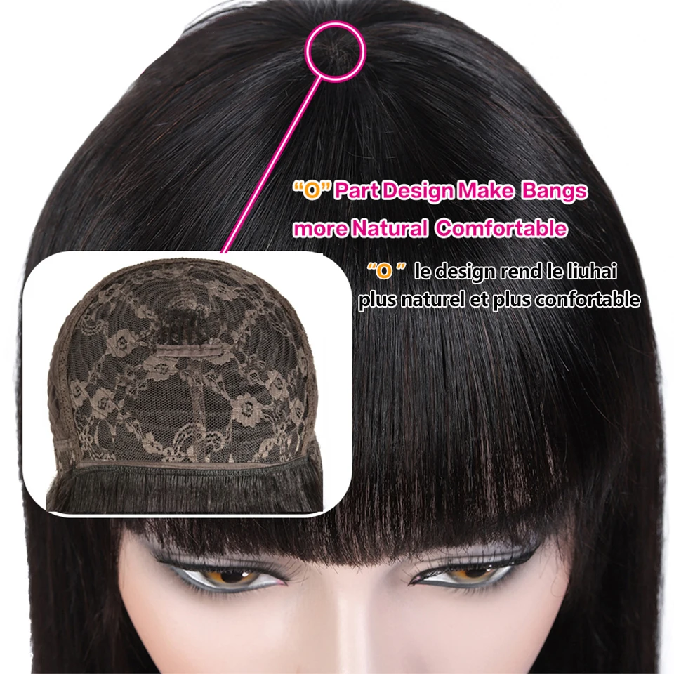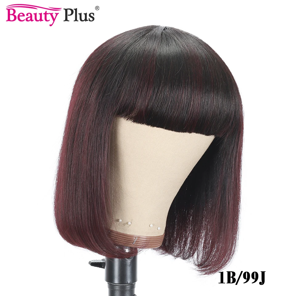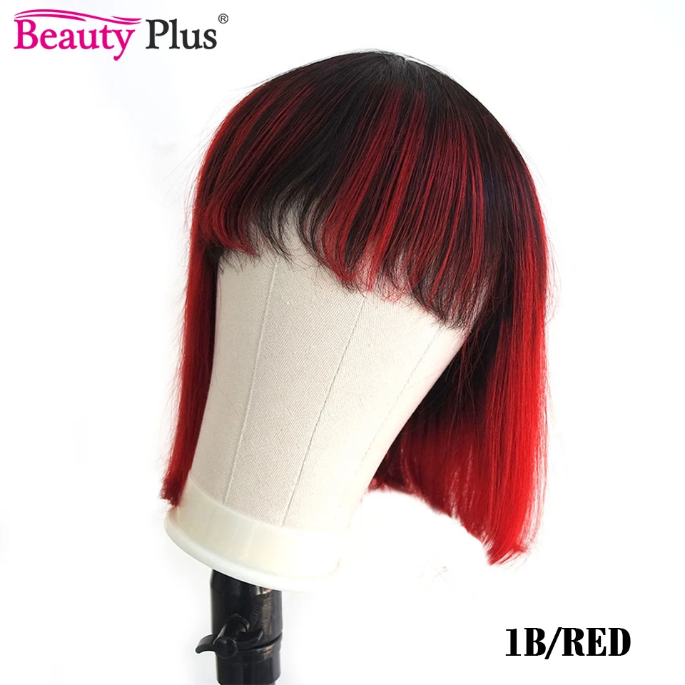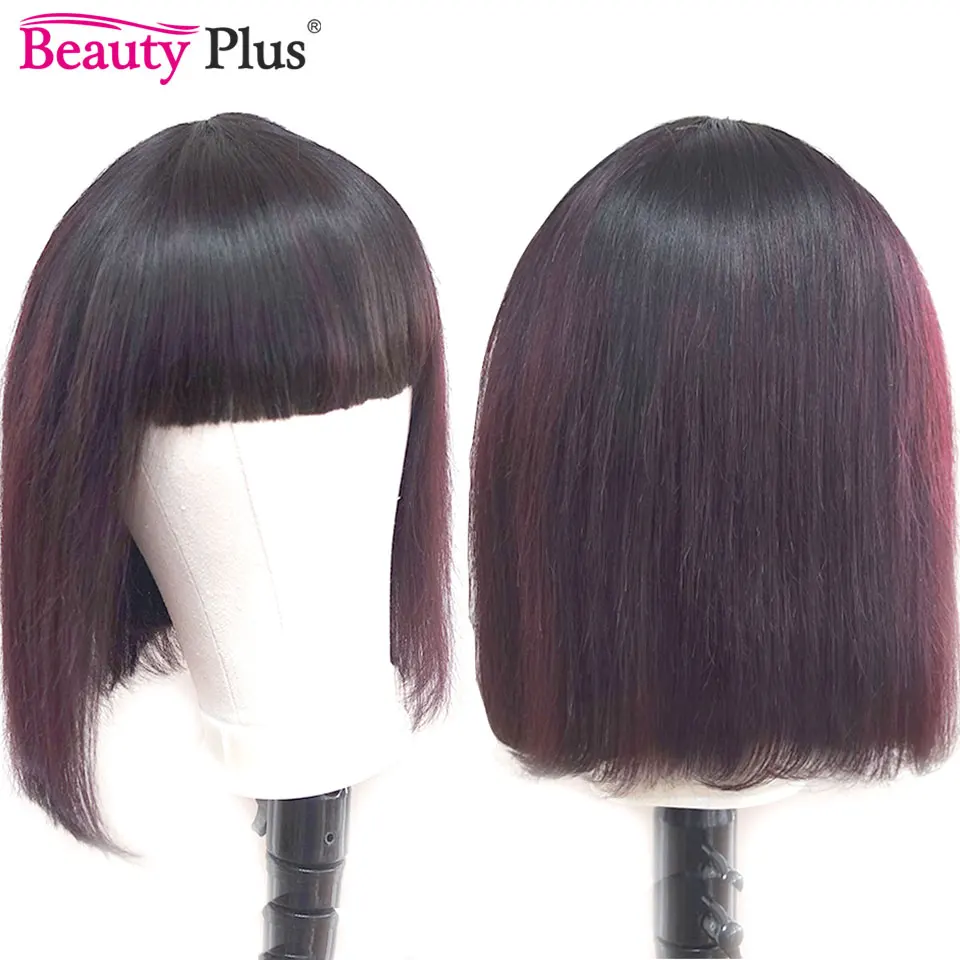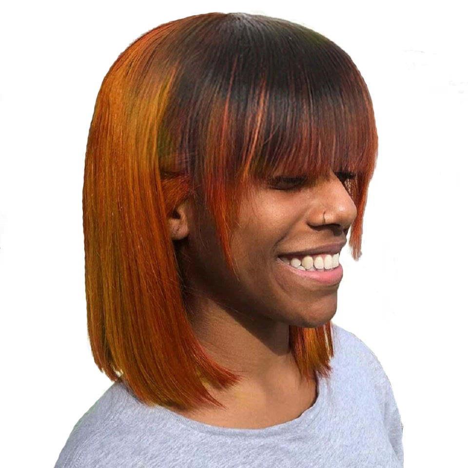 Парик короткий прямой с челкой, 8-14 дюймов, 100% натуральные бразильские волосы Remy, парик с челкой для чернокожих женщин, парики полностью машинной работы