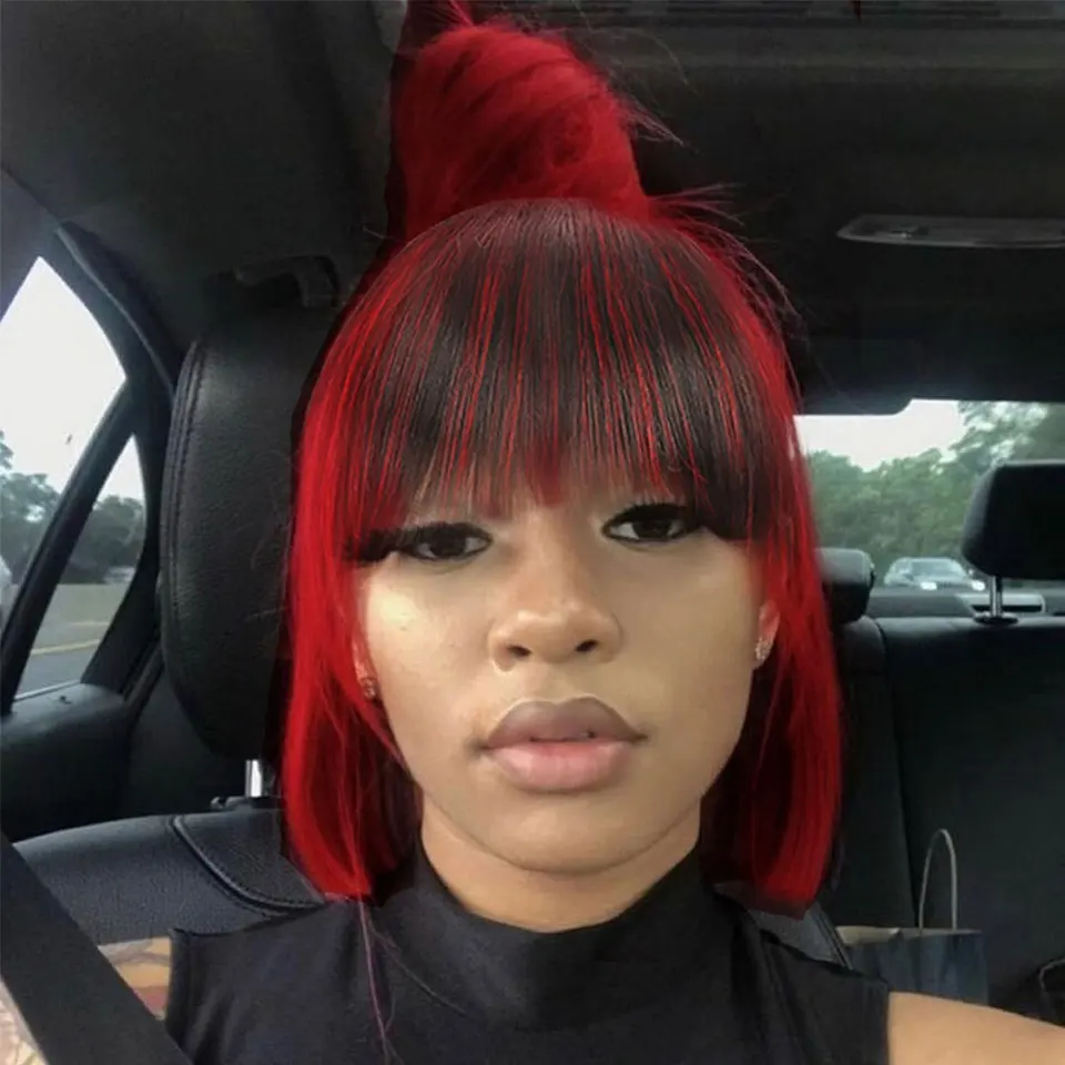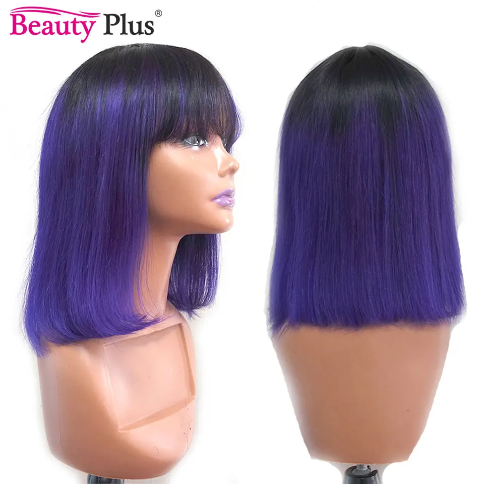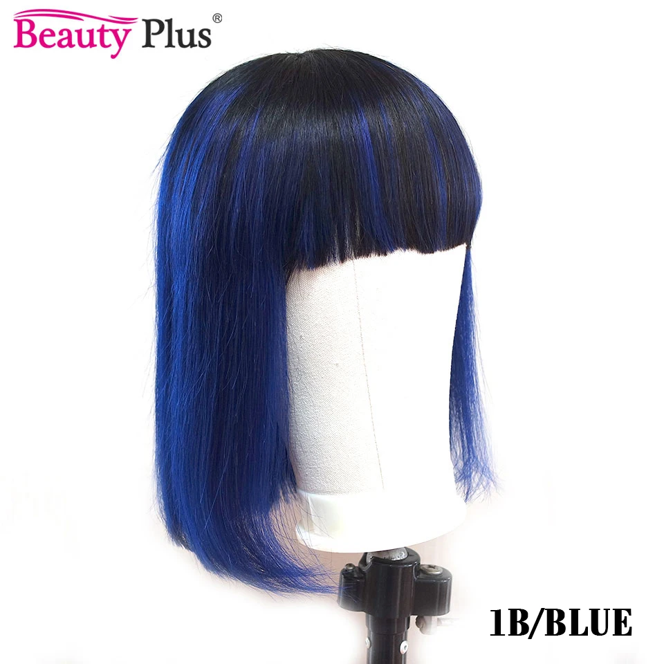 Омбре цветные прямые волосы короткий боб парик с челкой Remy прямые человеческие волосы парик