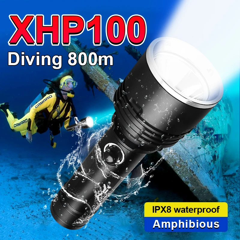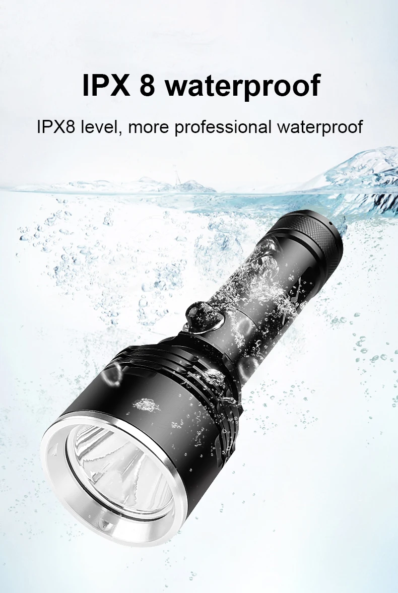 Фонарик XHP100 для подводного плавания, мощный светодиодный светильник, перезаряжаемая подводная лампа IPX8, водонепроницаемый фонарь для дайвинга