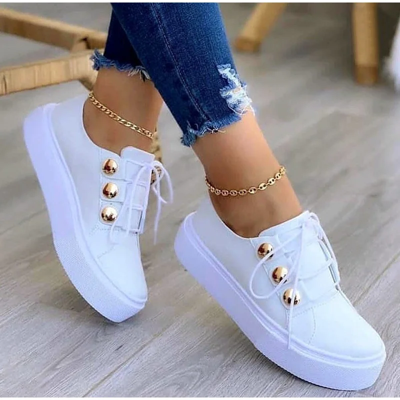 Женские кроссовки на толстой вулканизированной подошве, из ПУ кожи