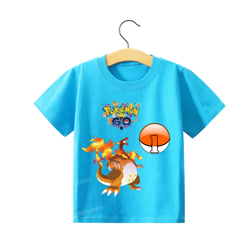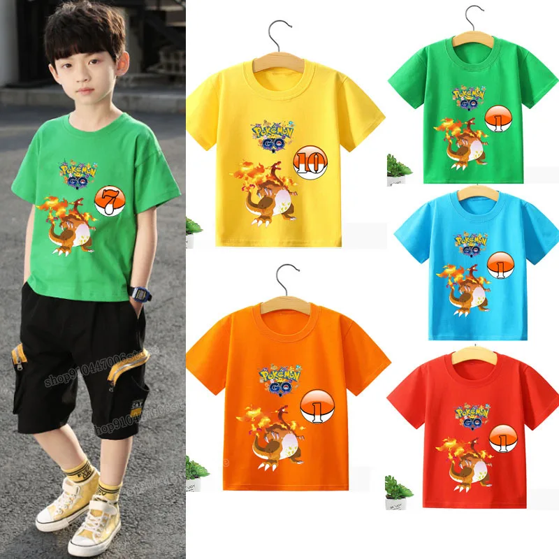 Футболка с покемоном для мальчиков, модная детская одежда, аниме фигурка Пикачу, Charizard, летние хлопковые короткие топы, эстетические подарки