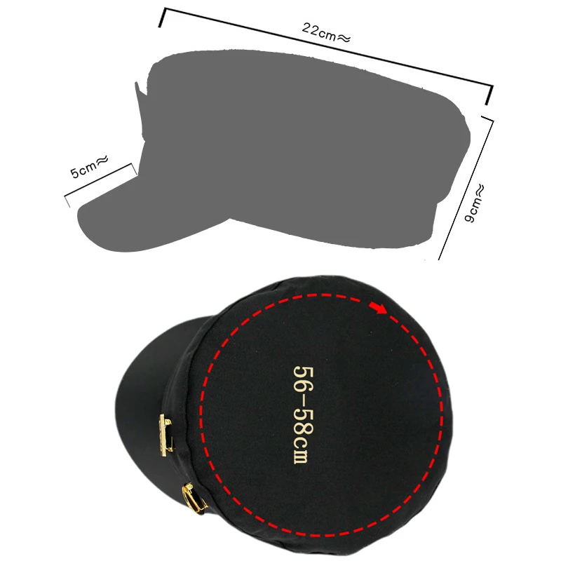 Conditoin:100% новый брендМатериал: ПУ + хлопокРазмеры: 58 см, козырек 5,5 смБейджа Размер: высота 3,5 см, ширина 2,2 смЦвет: как на картинкеПримечание:1. Пожалуйста, сравните детальные размеры с вашими, пожалуйста, учитывайте разницу в 1-3 см из-за ручного измерения. Спасибо за ваше понимание. (все размеры указаны в см, обратите внимание: 1 см = 0,39 дюйма)2. Реальный цвет товара может быть s светильник ly отличаться от изображений, размещенных на веб-сайте, по причине многих факторов, таких как яркость вашего монитора и светильник яркость при фотосъемке. Спасибо за понимание.
