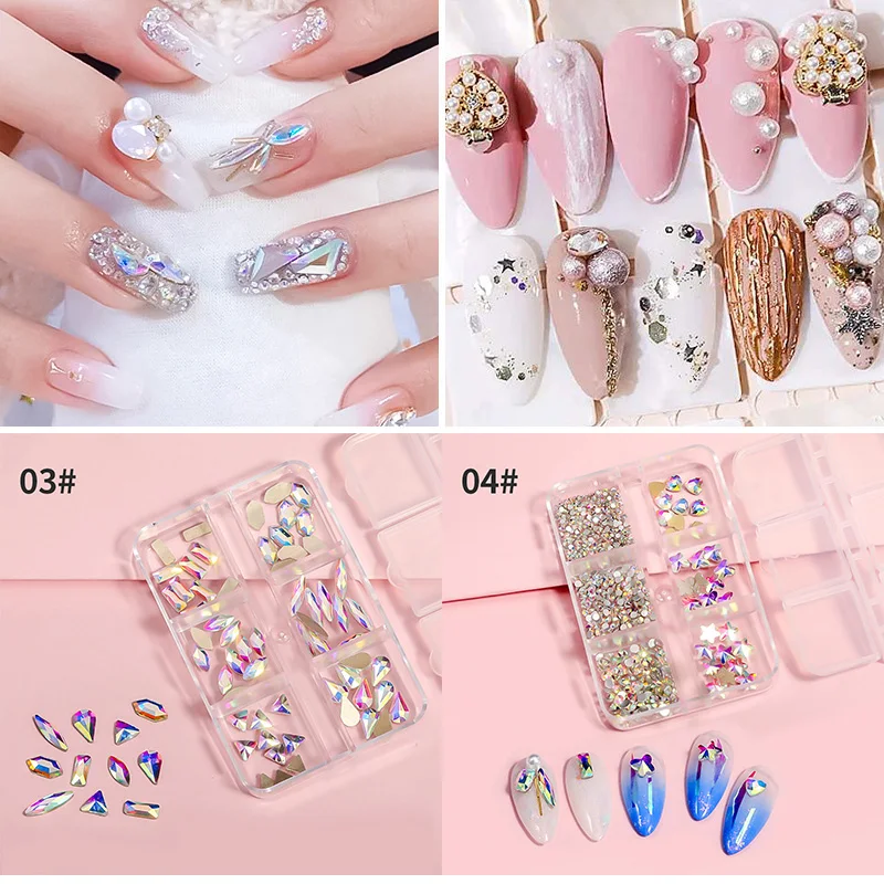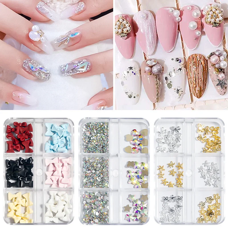 6 ячеек AB стеклянные кристаллы плоская задняя прозрачная 3D Стразы для ногтей в виде банта из смолы Геометрия сплав для дизайна ногтей шпильки декоративные аксессуары