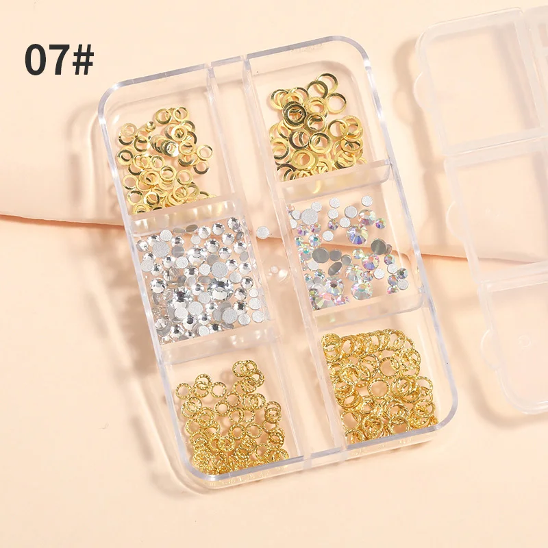 6 ячеек в коробке, кристаллы, стразы для дизайна ногтей, Металличес...