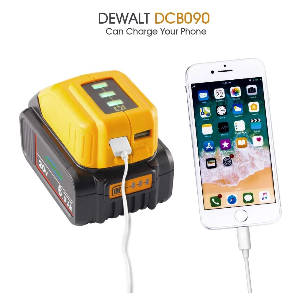 Двойной USB-преобразователь для Dewalt 14,4 в 18 в 20 в, преобразователь литий-ионной батареи DCB090, USB-адаптер для зарядки устройства, источник питания