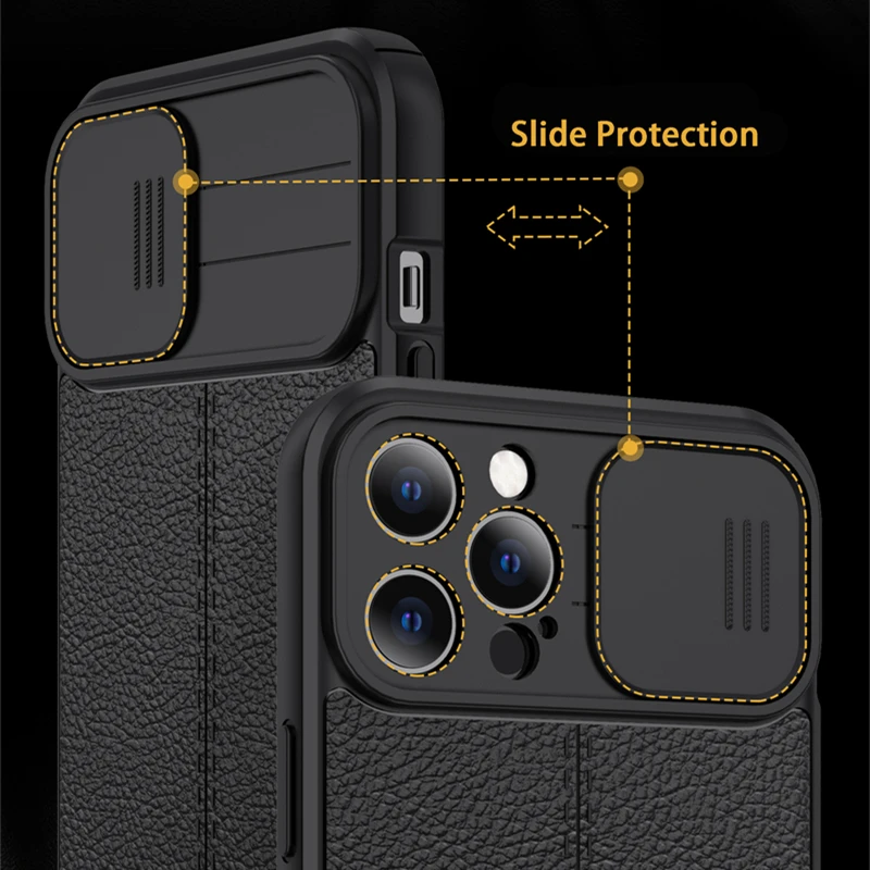 Чехол для защиты объектива скользящей камеры для iPhone 13 12 Mini 11 Pro Max XR XS 6S 7 8Plus, роскошный мягкий кожаный текстурный противоударный чехол