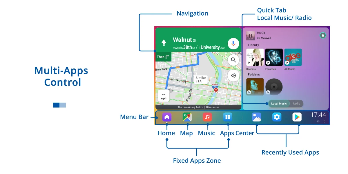 Он поддерживает сплит-экран, который запускает два разных приложения бок о бок, вы можете наслаждаться Spotify и Google Maps на экране.Примечание: Не все приложения поддерживают сплит-экран, Функция PIP работает только с Google Maps и VLC Media Player.