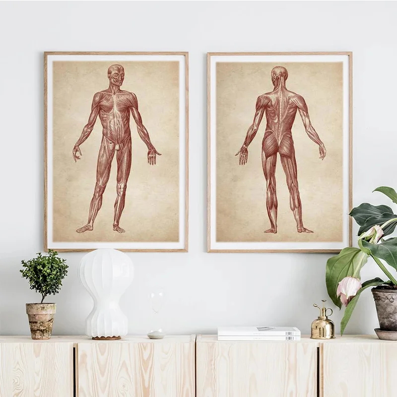 Скелет, орган, мышечная Анатомия человека, винтажная Картина на хол...