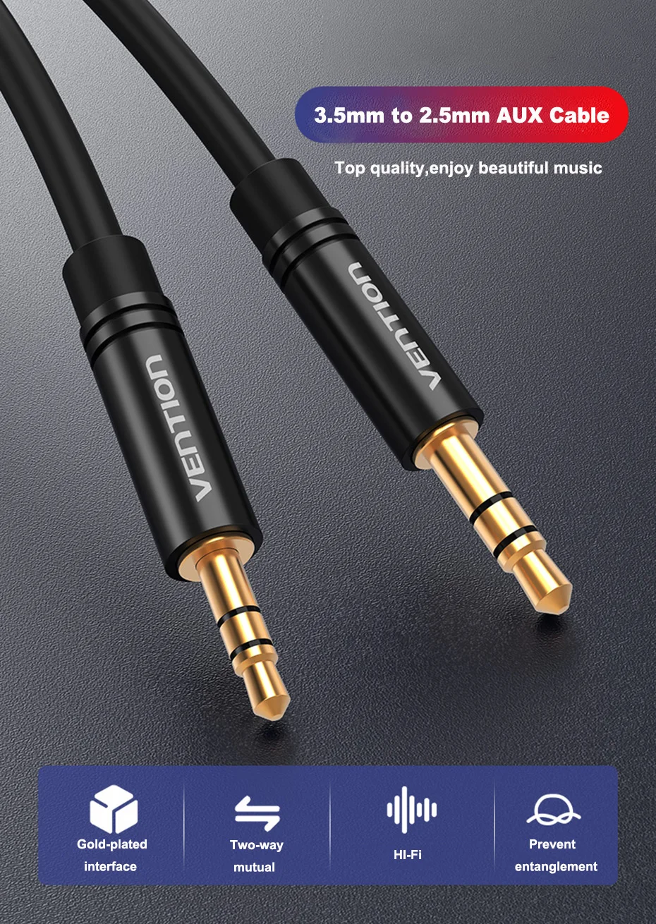 Аудиокабель Vention 2,5 мм-3,5 мм, Aux-адаптер, разъем 3,5-2,5, кабель папа для наушников, смартфонов, автомобильных колонок