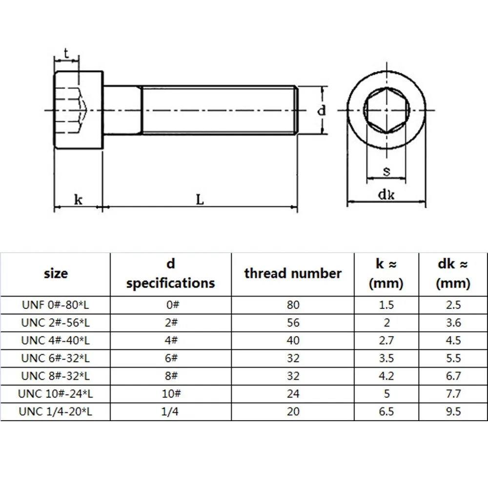 UNF 0 #-80 UNC 2 #-56 4 #-40 6 #-32 8 #-32 10-24 США грубая резьба ...