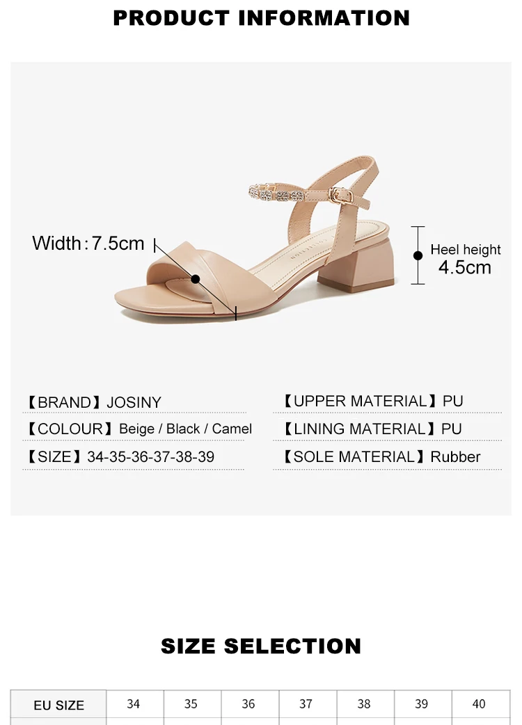 Женские сандалии JOSINY на высоком каблуке, летняя обувь с открытым носком и пряжкой, сандалии с украшением, женская обувь для женщин, 2022