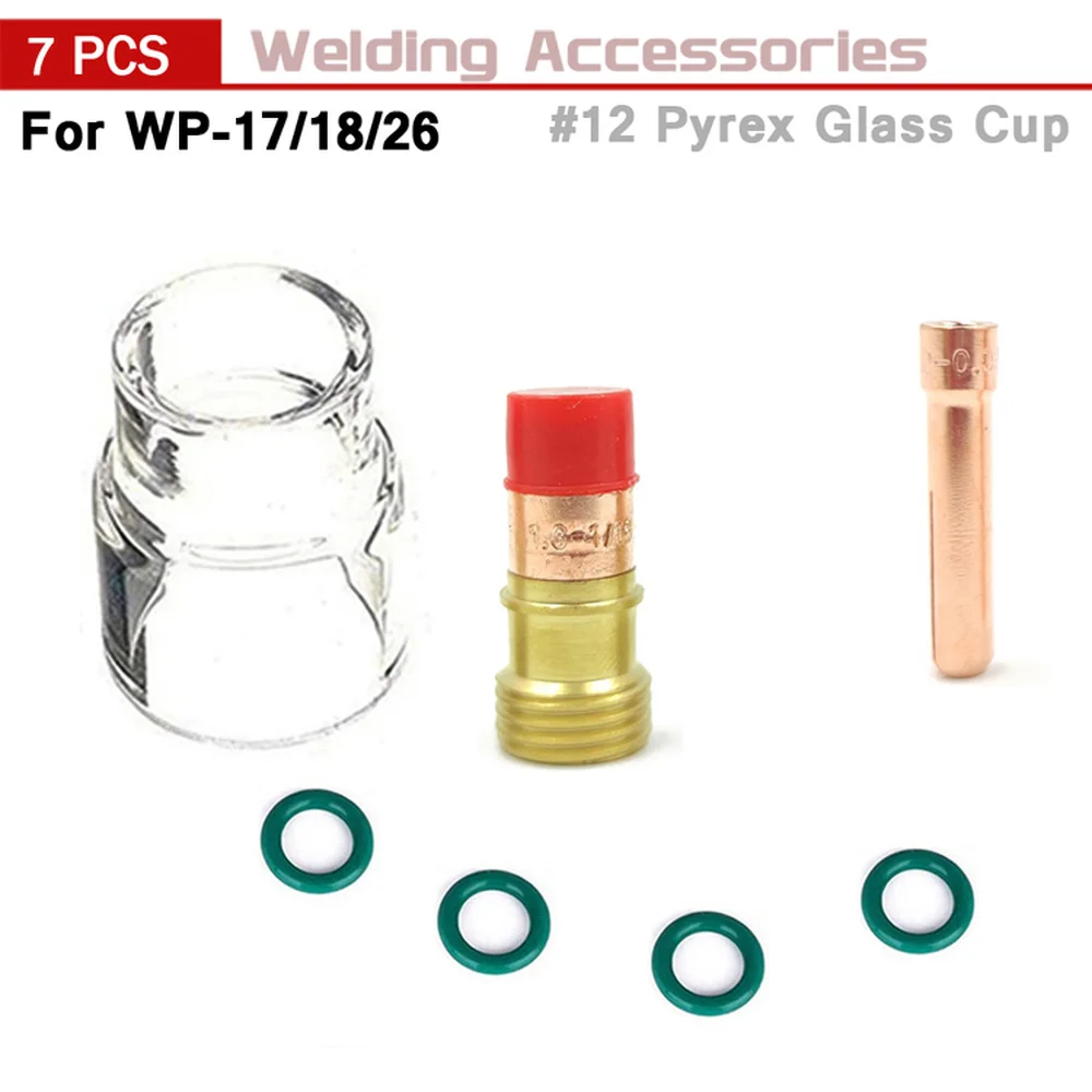 7 шт. TIG сварочный фонарь для газовых линз #12 Pyrex Стеклянная чашка набор контактных наконечников для WP-17/WP18 WP26 Запчасти для инструментов термостойкая чашка