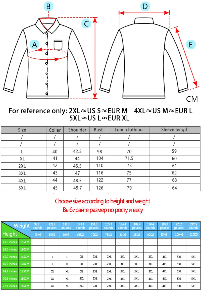 A: обхват груди B: воротник C: длина D: плечо E: рукав