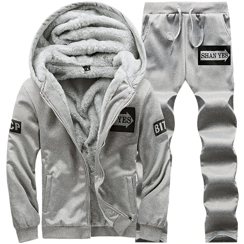 Новый зимний мужской комплект из флиса, Модный повседневный спортивный костюм, толстовка + штаны, спортивный костюм, мужской зимний теплый костюм с капюшоном
