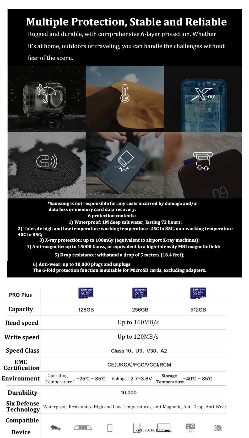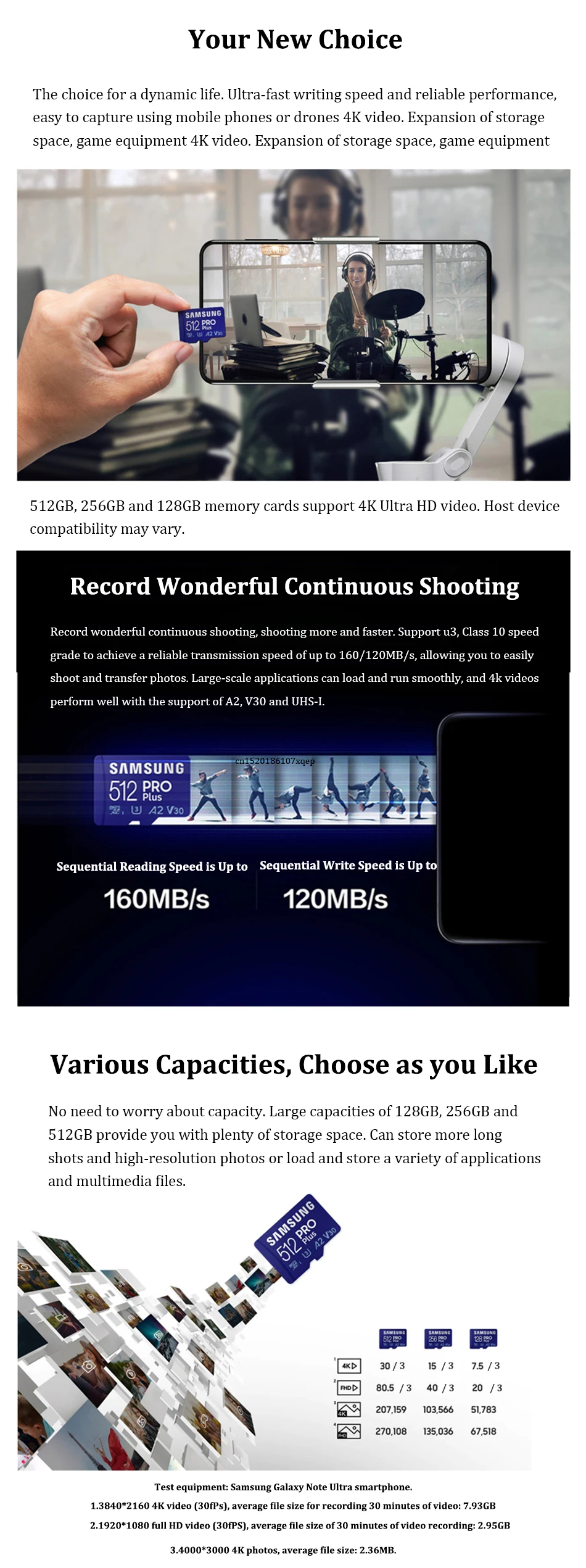 Выбор для динамичной жизни. Ультра-Быстрое письмо скорости и надежной производительности,Легко снимать с помощью мобильных телефонов или дронов 4K видео. Расширение хранилищаПространство, игровое оборудование 4K видео. Расширение пространства для хранения, игровое оборудование