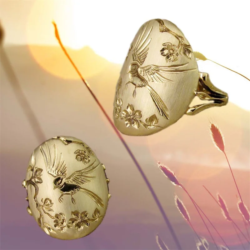 Золотая птица Цветочная ветка новое ретро металлическое весеннее кольцо с ласточкой Дамская Мода Универсальные вечерние ювелирные изделия на годовщину подарок