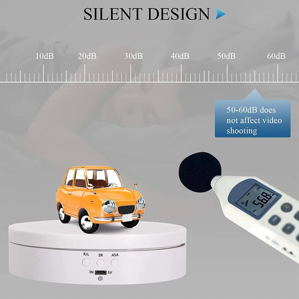2. Бесшумное и плавное вращение: вы обнаружите, что поворотный стол является идеальным продуктом. Эта Поворотная поддержка работает с низким уровнем шума и низким энергопотреблением. 50-60 децибел не повлияет на вашу видеосъемку.