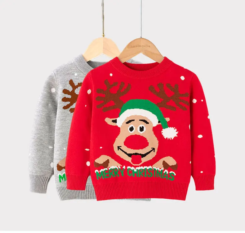 Осенне-зимний детский свитер, свитеры для мальчиков и девочек с рисунком оленя, одежда для мальчиков, вязаная одежда, теплые топы для девочек, Рождественская вечеринка, Детский свитер