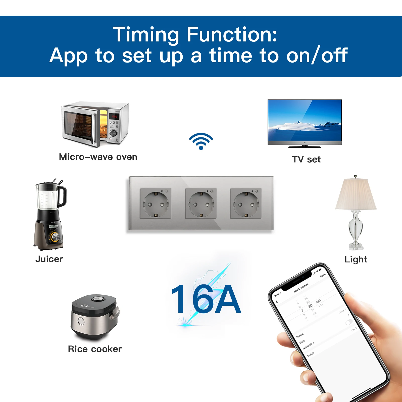 BSEED Wifi умная настенная розетка, розетка для монитора питания, Google Home Tuya, беспроводное управление 16A, стандарт ЕС, Синяя подсветка