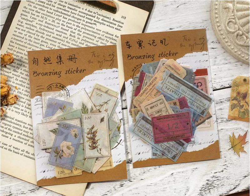40 шт.упак. различные Ретро наклейки с бронзированием 6 стилей планер журнал Скрапбукинг Бумажные канцелярские школьные принадлежности