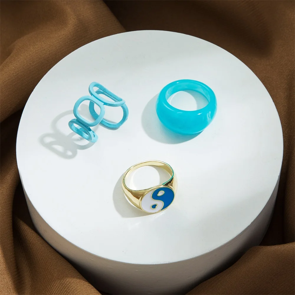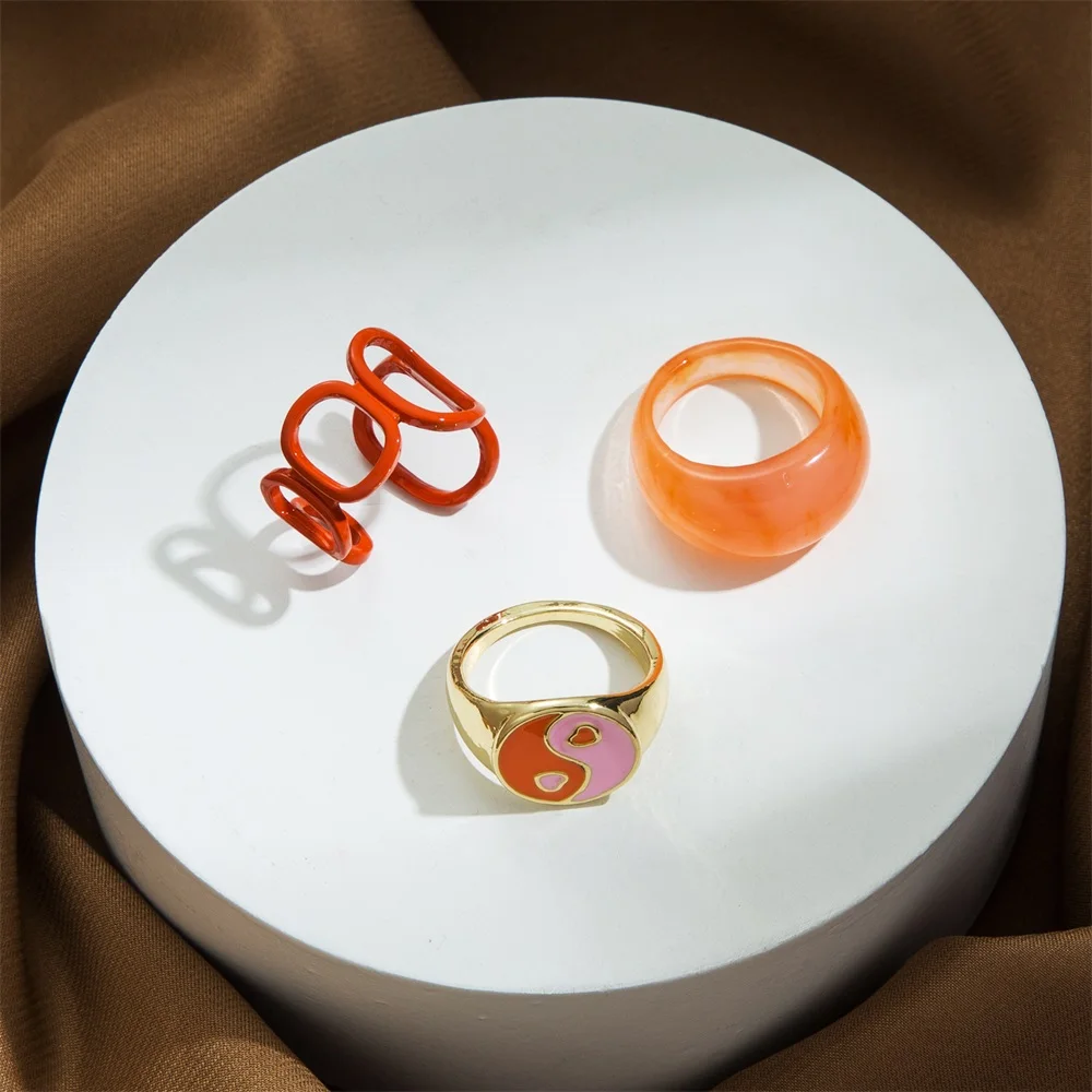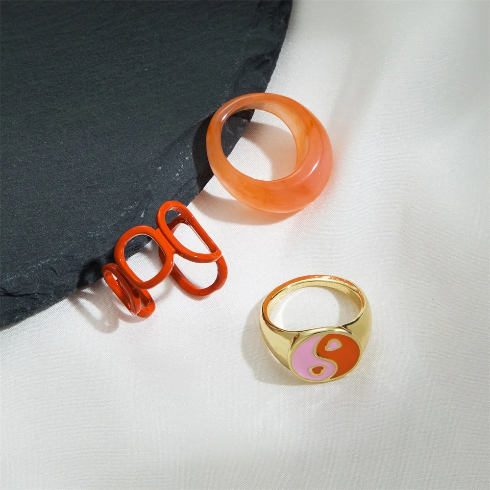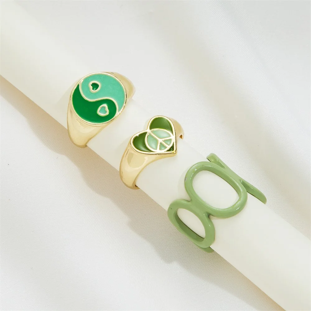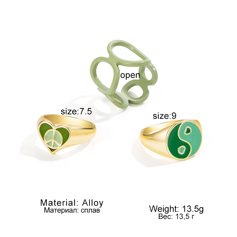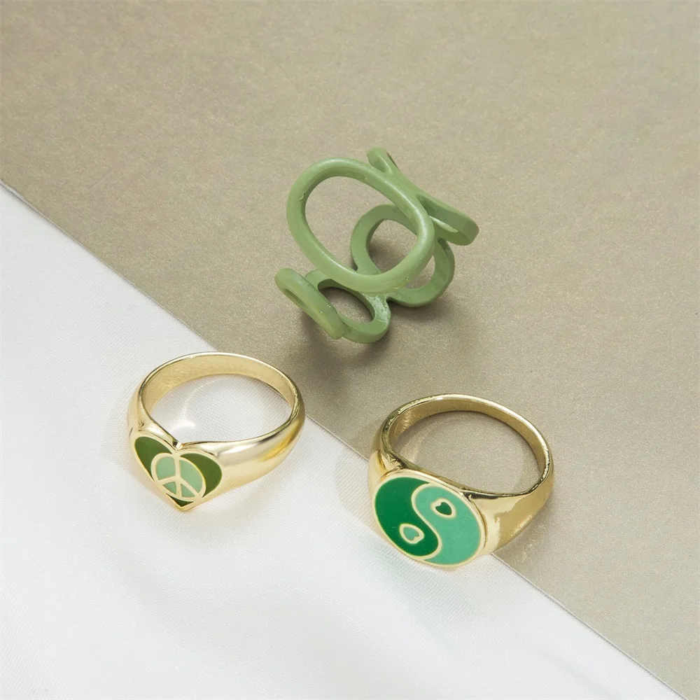 Набор Колец IPARAM 2021 в стиле панк, золотистого и зеленого цвета из смолы, женское модное акриловое кольцо с цепочкой в форме сердца, оптовая продажа, ювелирные изделия, подарки