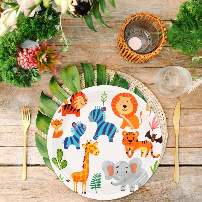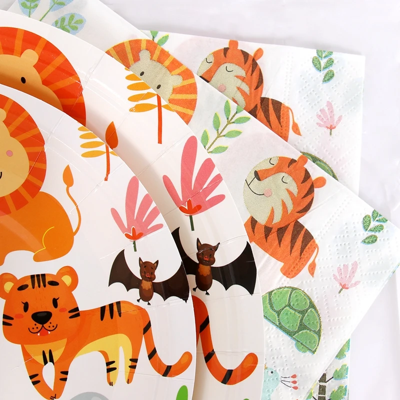 Столовая посуда одноразовая с изображением животных леса джунглей