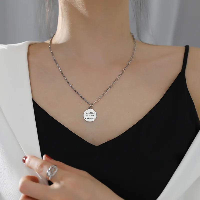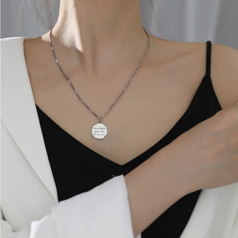 U-Magical панк Асимметричная Подвеска из нержавеющей стали, ожерелье для женщин с буквенным принтом, массивная цепочка, ювелирные изделия из металла