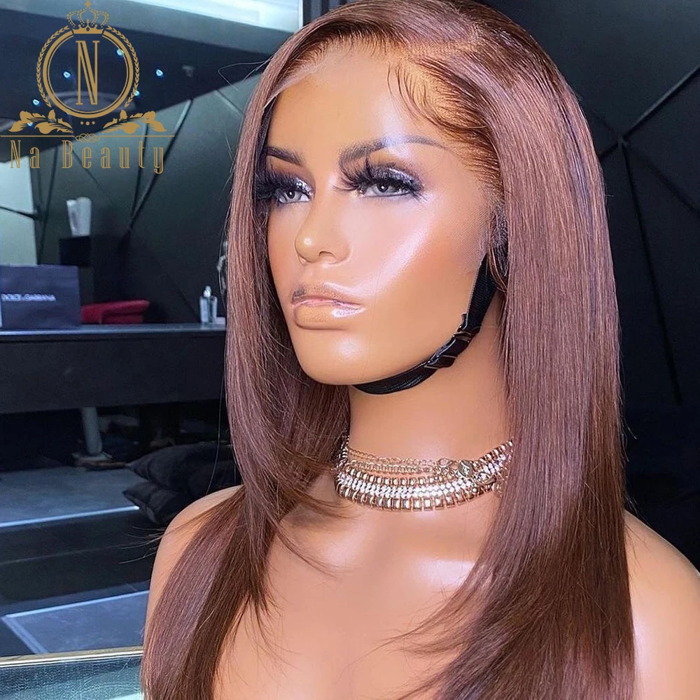 Коричневый эффектом деграде (переход от темного к человеческие волосы парик 13x6 прозрачный Синтетические волосы на кружеве парики из натуральных волос на кружевной Выделите парик прямые тупым срезом для черный Для женщин Nabeauty 150%