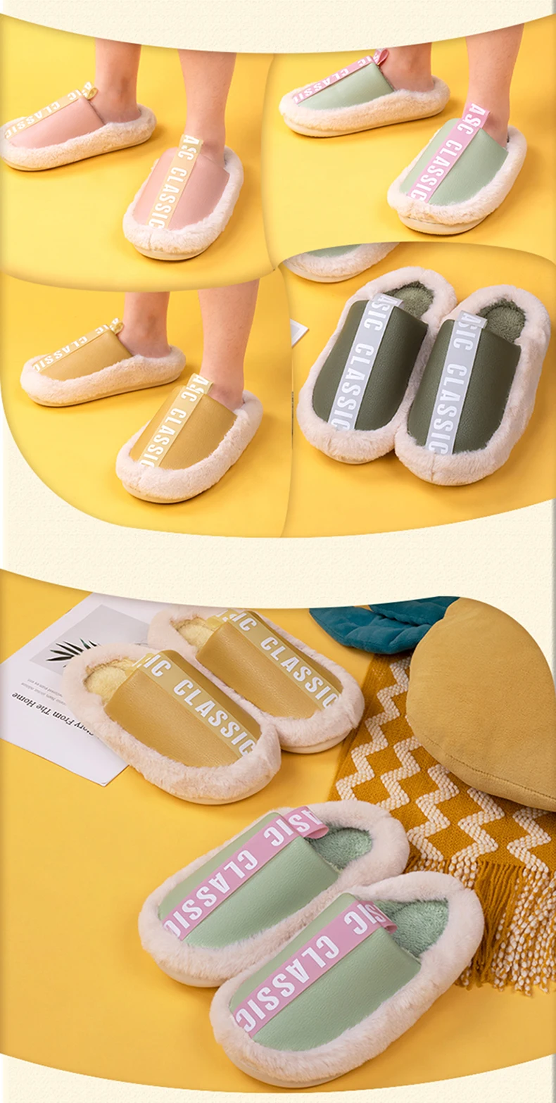Мужские домашние тапочки, зимние новые теплые плюшевые женские дома...