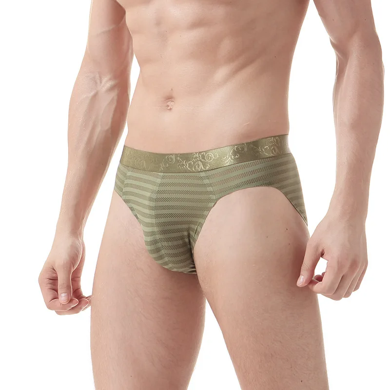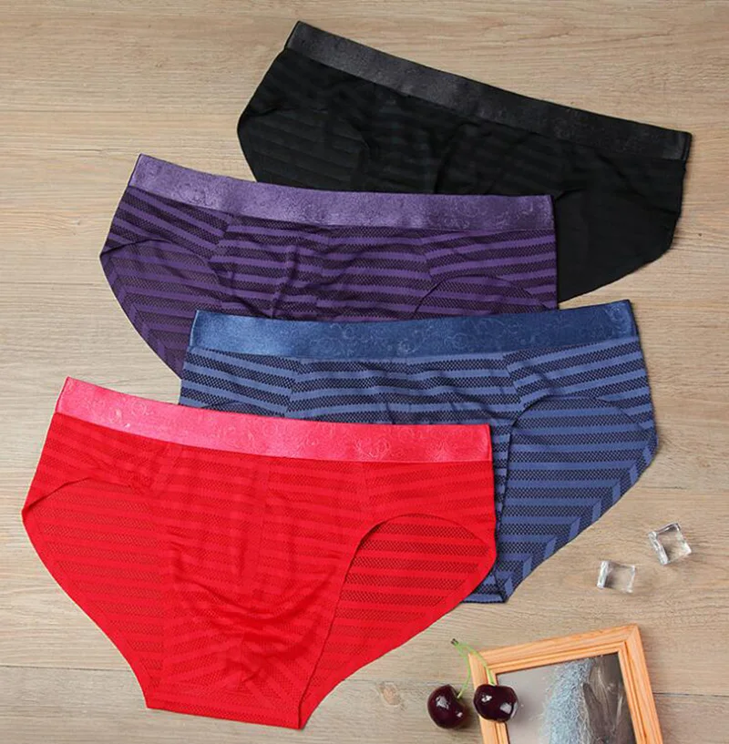 Трусы мужские, из сетчатой ткани, эластичные, в полоску