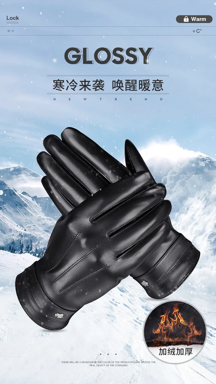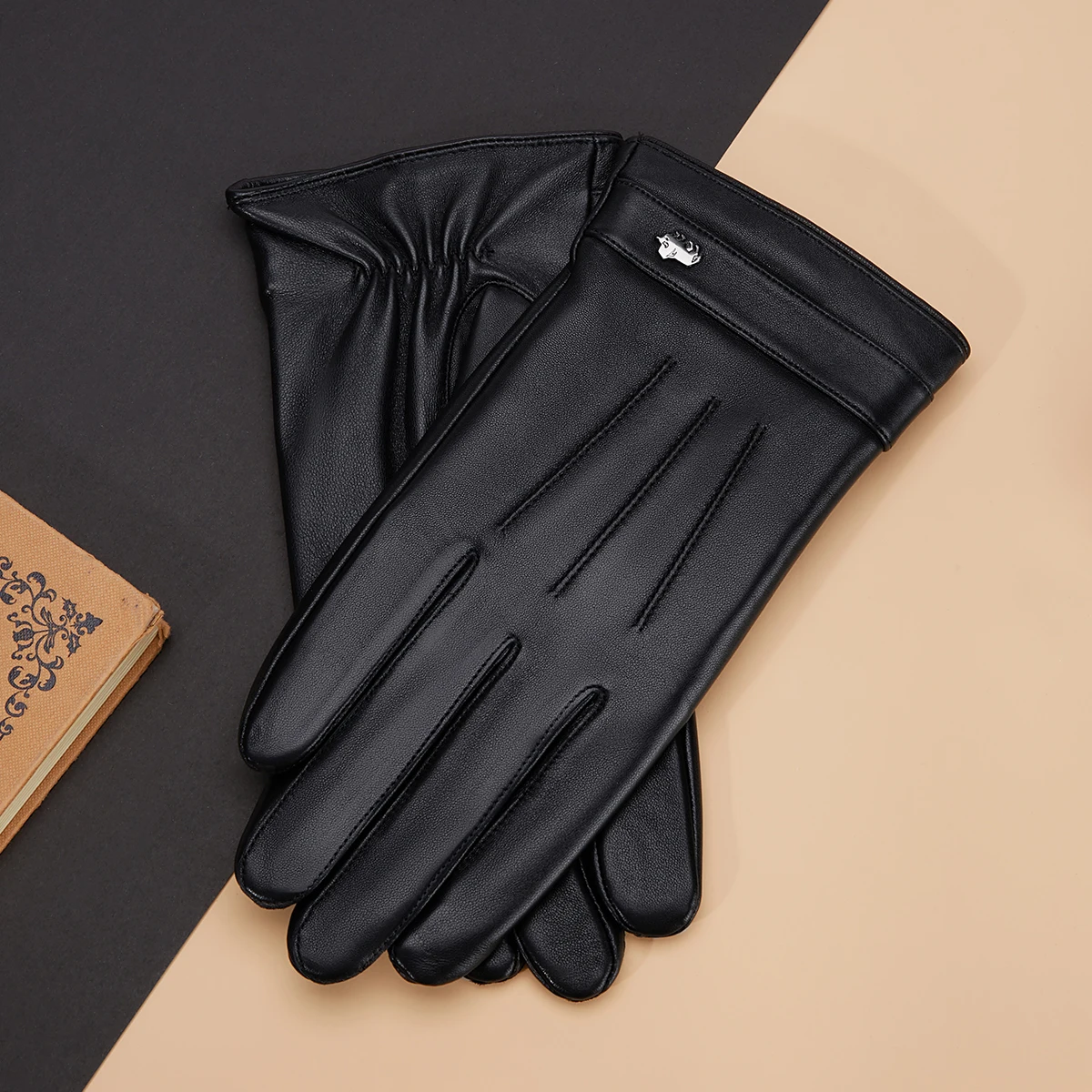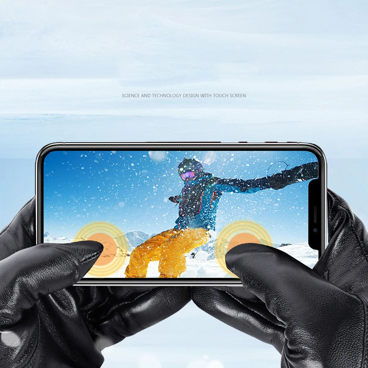 Мужские перчатки из натуральной овечьей кожи BISON DENIM, черные варежки с теплым сенсорным экраном, ветрозащитные мужские перчатки из овечьей кожи на осень и зиму