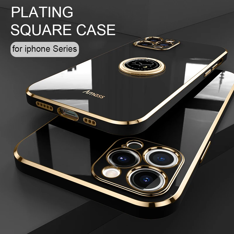 Чехол для телефона с квадратным кольцом и покрытием для Iphone 12 11 Pro Max Iphone11 8 7 XS 6 S Plus 10 X Xr, роскошный силиконовый чехол-подставка