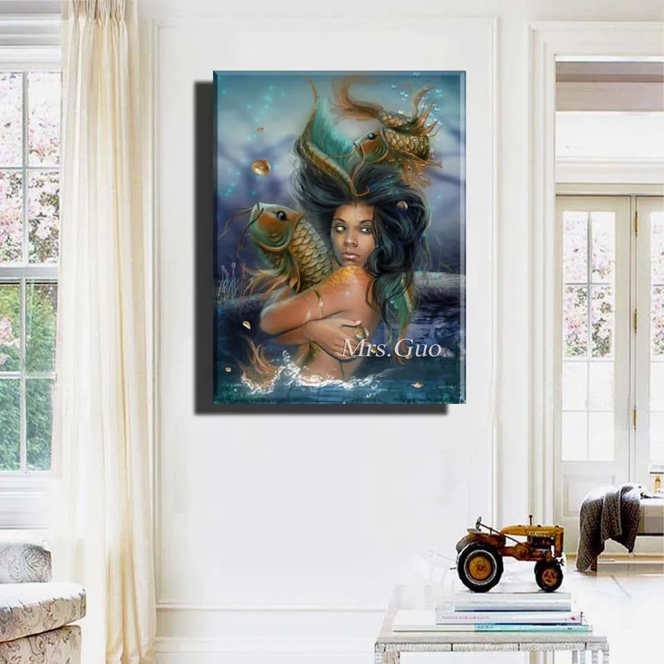 Алмазная картина, фигурка русалки, животные, рыбки, квадратное алмазное круглое алмазное украшение, настраиваемое настенное художественное украшение, Безрамное