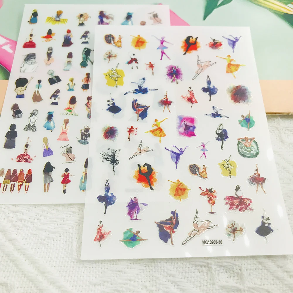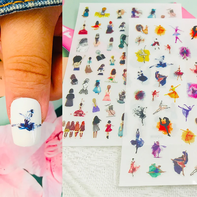 Самодельные красочные наклейки для дизайна ногтей, наклейки, чернила, изображение танцующей девушки, украшение для ногтей, татуировки Z0518