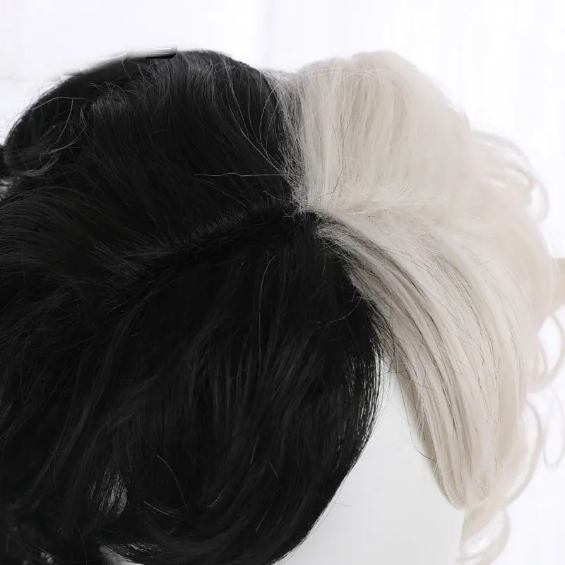 2021 Косплей Костюм Cruella злой королевы черный белый парик модная Эмма Волшебные волосы для представлений Хэллоуин