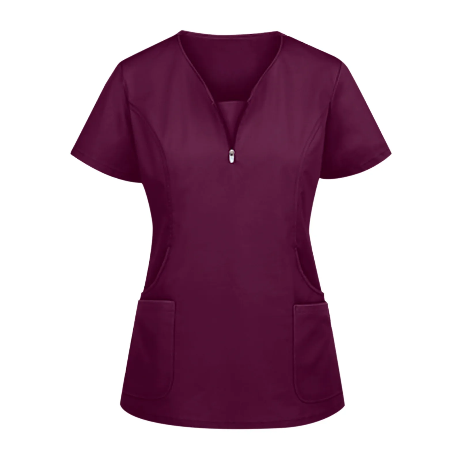 Однотонные скрабы для кормления, Униформа, топ, женские рубашки с коротким рукавом и карманами для работников ухода, женская блузка туника для медсестер, скрабы
