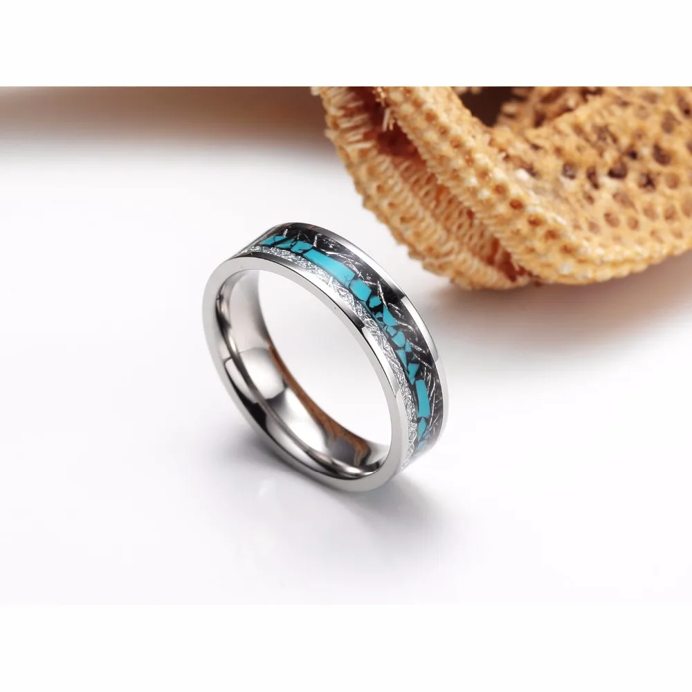 Обручальное кольцо с голубыми краями с матовой отделкой, 6 мм, Женс...